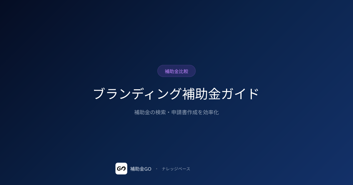 A持続化補助金でロゴ制作、パッケージデザイン、ブランドサイト構築が対象です。ただし、ウェブサイト関連費は経費の1/4が上限の公募回があります。JAPANブランド育成支援は海外展開向けに500万円まで使えます。補助金GOでは投資内容から最適な補助金をAIが提案します。