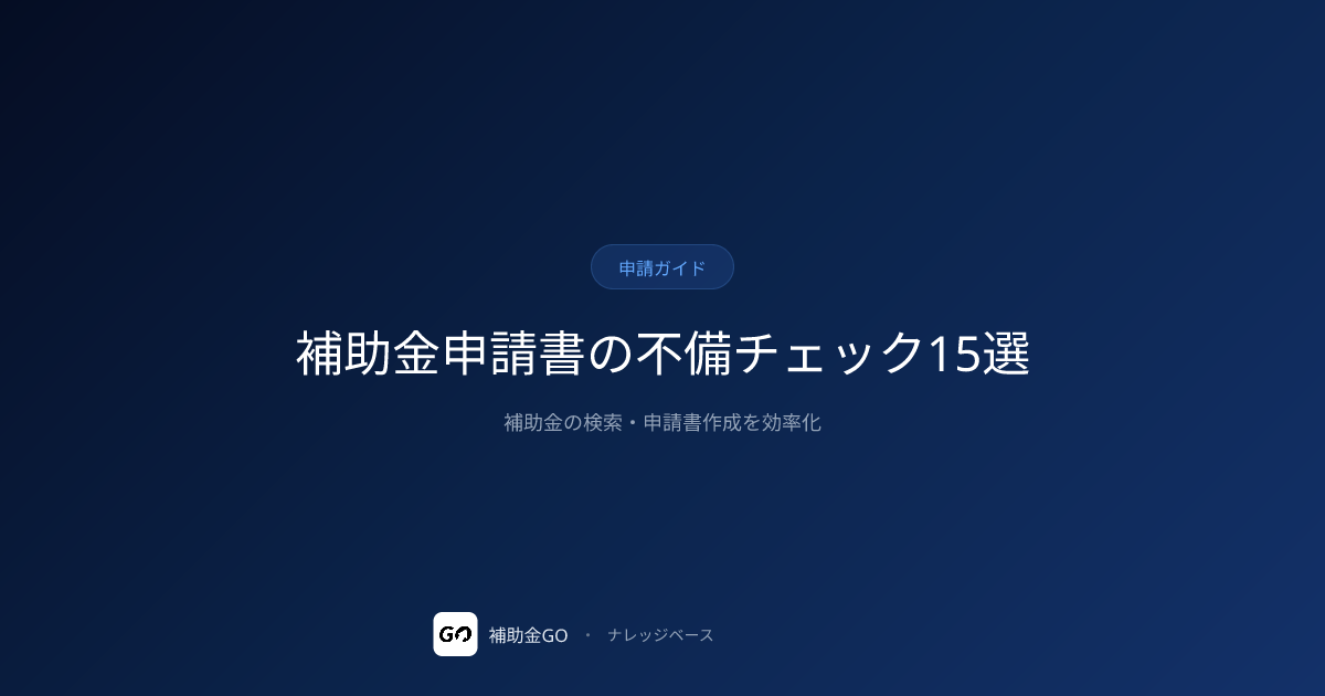 補助金申請書の不備チェック15選。添付漏れ・数値不整合・見積不備・押印漏れ。門前払い回避の完全チェックリストと第三者レビューの重要性を解説。