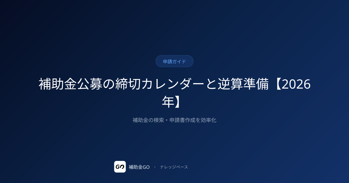 補助金公募の締切カレンダーと逆算準備【2026年】