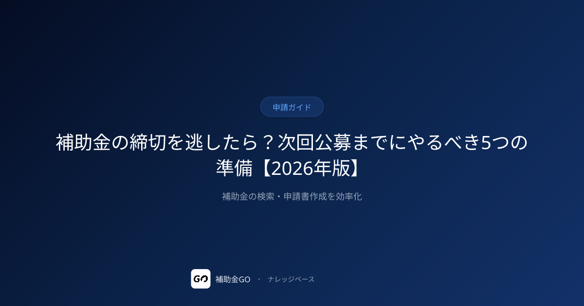 補助金の締切を逃したら?次回公募までにやるべき5つの準備【2026年版】