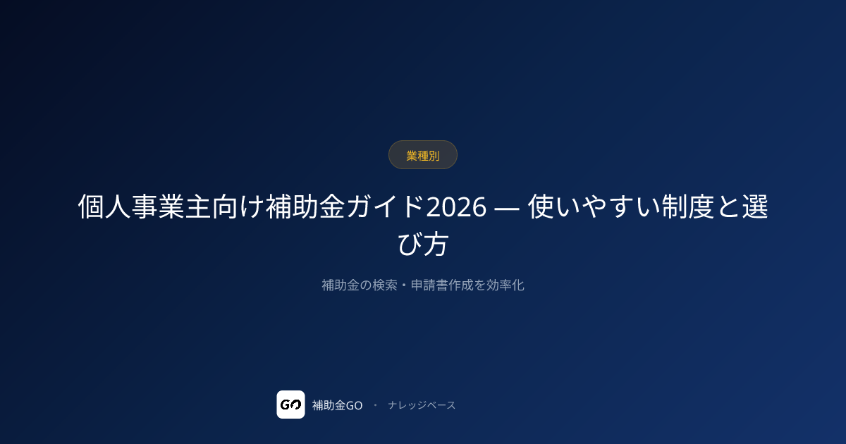 個人事業主向け補助金ガイド2026 — 使いやすい制度と選び方