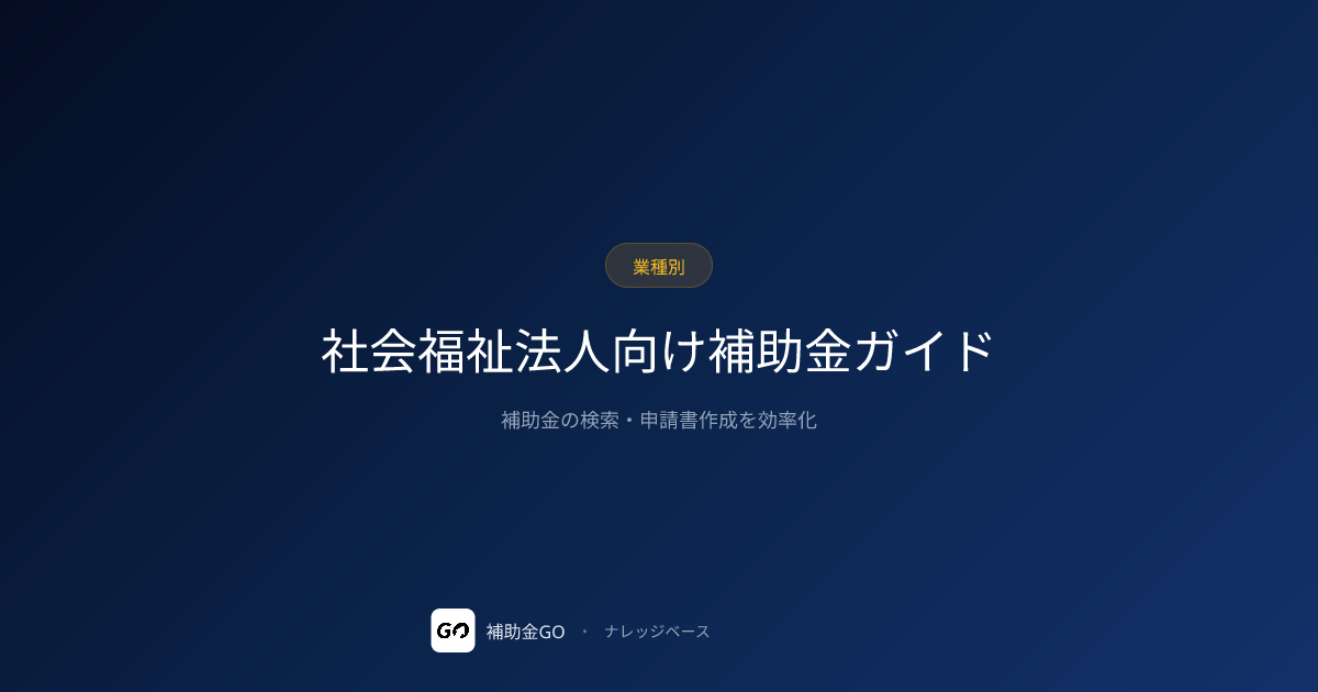 社会福祉法人向けの補助金・助成金を5制度で解説。施設整備・ICT導入・介護ロボット・処遇改善加算まで網羅。申請窓口、効果の書き方、早期相談の重要性、計画承認の流れを記載。