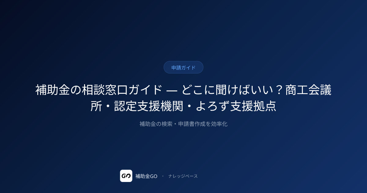 補助金の相談窓口ガイド — どこに聞けばいい?商工会議所・認定支援機関・よろず支援拠点