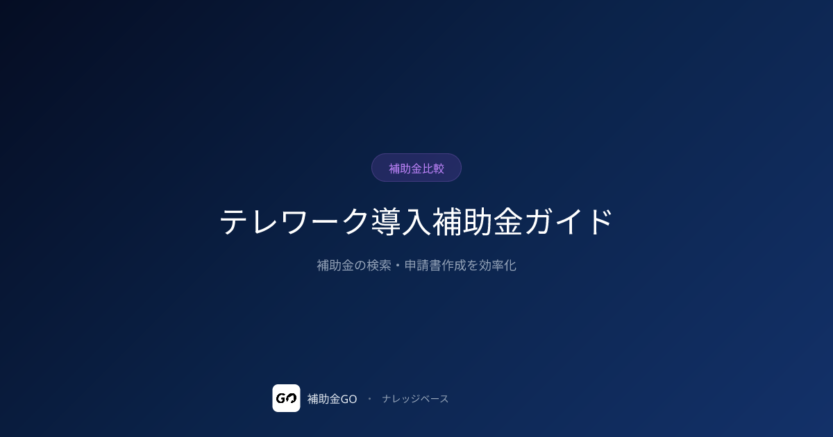 IT導入・持続化・自治体のテレワーク補助3制度を比較。VPN・クラウドツール・サテライトオフィスの対象経費とセキュリティ要件。審査基準に沿った申請書をAIが自動生成。無料診断あり。