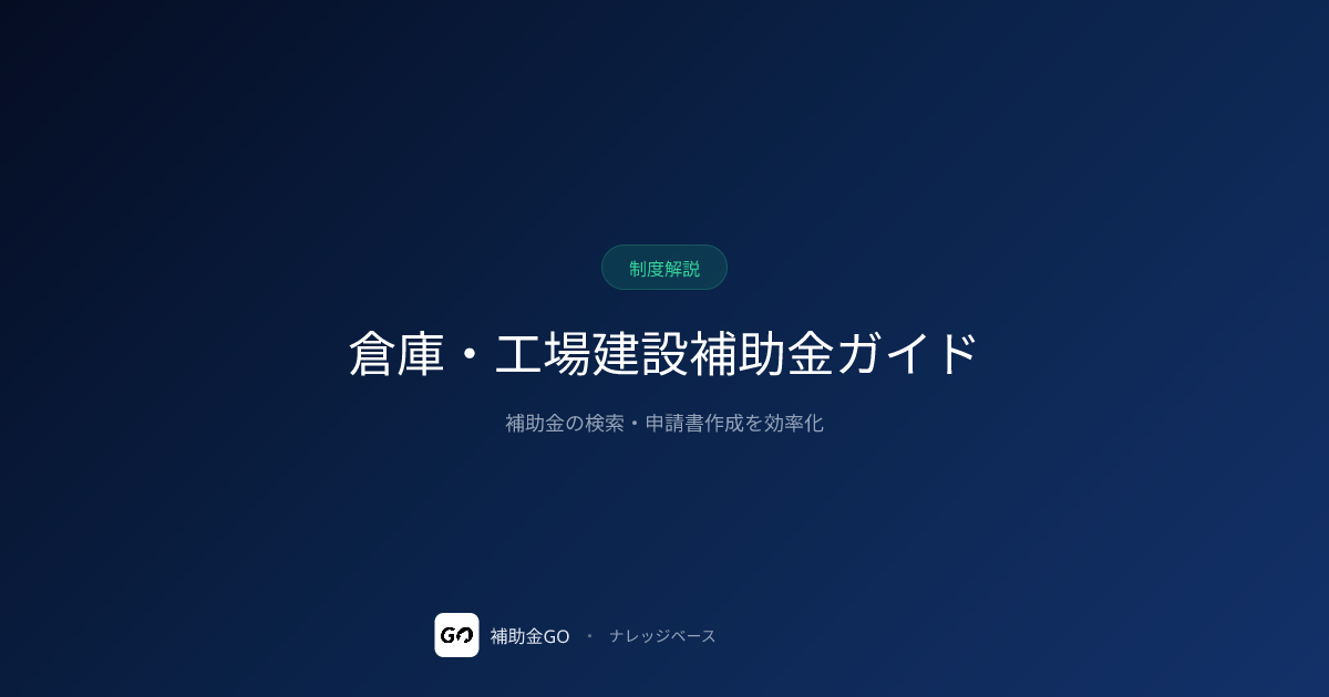倉庫・工場建設の補助金4制度を解説。ものづくり建屋40%以下、自治体企業立地数千万〜数億円。活用可能な制度と申請のポイント。設備との一体申請戦略。